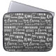 Koel een zachte, grijze laptophoes met een typografisch patroon van woorden die aan het spelen van schaken zijn gekoppeld. Met inbegrip van Knight, King, Queen, Pawn, Checkmate, Bishop en Rook. Ideaal voor de schaakspeler in je leven.
