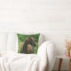 Foto van het kastanjepaard dat naar rechts kijkt tegen gras en bomen met een groene achtergrond en een kussen van kleur (aanpasbaar)/