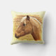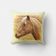Cet oreiller à jetons présente un beau cheval doré brun rétro éclairé par le soleil jaune.