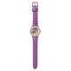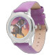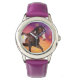 Photographie d'un Paint Horse galopant pendant un lever de soleil coloré, affichée sur une montre.
