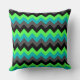Un oreiller de 20 po x 20 po doté d'un élégant design motif de chevrons multicolores en noir, gris, vert et turquoise.