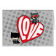 Découvrez Chibi Catwoman qui bondit sur Chibi Batman dans cette adorable image, avec un coeur rouge géant avec le mot "Amour".