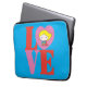 Bekijk Chibi Supergirl in een pingelen hart dat de "O" vertegenwoordigt in deze "LOVE" gestapelde logo.