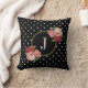 Chic Black Flowers Polka Dots Monogram Kussen