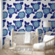 Stijlvolle schil en stok Hamptons stijl blauw en wit bloemen hortensia's patterned behang