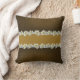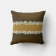 Elégant accent décorateur jetez l'oreiller fait dans les graphiques d'un brun sur motif marron, avec une bande marron doré au milieu. Des graphiques de belles fleurs blanches d'edelweiss forment un bord décoratif des deux côtés de la bande jaune doré. Idéal pour la maison ou le bureau. Customisez pour ajouter du texte.