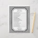 U kunt de naam personaliseren op deze zwarte en witte chevzanzzag zag (zigzag) strepen met een gepersonaliseerd vrijgezellenfeest "wie het beste bruidespel kent". U kunt de tekst veranderen gebruikend de personaliseer opties. De kleuren van dit vrijgezellenfeest spel zijn klassiek zwart-wit.. perfect voor een lente, zomer, of winterbruiloft.