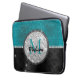 Chic faux Silver Glitter Turquoise Black monogram Laptop Sleeve