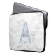 Chic French Blue White Marble Script Name Monogram Laptop Sleeve