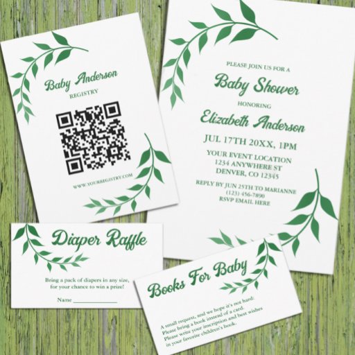 Chique waterverf rustieke botanische groen baby shower.