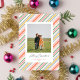 Célébrez la saison avec cette carte photo de Noël rayée et chic. Personnalisez le devant avec votre photo de famille préférée et ajoutez un message de Noël personnalisé au dos. Parfait pour partager des voeux de vacances chaleureux, cette carte de vacances personnalisée allie design rayé contemporain et élégance festive, ce qui en fait un moyen élégant et mémorable d'envoyer l'acclamation à des amis et à la famille.