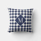 Het zwarte, witte, witte, afgecheckte kleurenpatroon van de afbeelding is voorzien van uw monogram in een grote, donkerblauwe diamant met een witte rand aan beide zijden. Voeg je initiaal toe aan de zijbalk. Andere kussenopties beschikbaar in sidebar. Klik op de link Rocklawn Arts om het Navy and White Checkerboard Pattern op andere items te zien. Copyright ©Claire E. Skinner. Alle rechten voorbehouden.