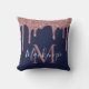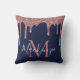 Chic Navy Blue en Roos Gold Glitter Drips Monogram Sierkussen met mode faux blush roze/roos goudglitter druppelt op een chemische marine blauwe achtergrond met uw eigen monogram en naam. Je druipt in luxe, dus show het af! Neem contact met ons op via cedarandstring@gmail.com als u hulp nodig hebt bij het ontwerp of de bijbehorende producten.