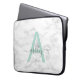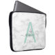 Chic Neo Mint White Marble Script Name Monogram Laptop Sleeve