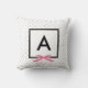 Grafische monogram kussen met een zwart vierkant met een roze lint tegen een zwart-wit puntpatroon. Het maakt geweldige cadeautjes voor familie en vrienden of voor jezelf om je thuis of kamer te versieren. Pas het aan door de placeholder tekst te vervangen. Klik op de knop "Aanpassen" voor meer opties zoals het wijzigen van het lettertype en de grootte ervan. *Gelieve te merken op dat het Zazzle Watermerk dat in de gezoemvoorproef verschijnt NIET op het definitieve gedrukte product zal verschijnen. © Rosewood en Citrus