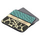Een chic quatrefoil patroon op een turkooisachtergrond samen met een gouden lint voor personalisatie en hieronder staat een stijlvolle girafdruk voor exotische diersoorten.