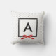 Grafische monogram kussen met een zwart vierkant met een rood lintje tegen een zwart-wit puntpatroon. Het maakt geweldige cadeautjes voor familie en vrienden of voor jezelf om je thuis of kamer te versieren.