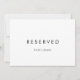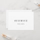 Dit gereserveerde teken van de kerkachtige typografie is perfect voor een moderne bruiloft. De kaart is dubbelzijdig (prints aan beide zijden). Het eenvoudige ontwerp biedt een klassiek, minimalistisch zwart-wit typografie met een rooskleurig boho-gevoel. in elke kleur. Houd het ontwerp minimaal en elegant, zoals het is, of personaliseer het door uw eigen grafiek en kunstwerk toe te voegen. Gebruik deze kaarten om stoelen of tafels te reserveren bij uw trouwceremonie, ontvangst of om het even welke gebeurtenis.