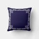 Chic White Lace Vector & Monogram op Navy Blue Kussen