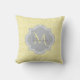Een geel geel kunstdeco-geschaald scalepatroon vierkant werpen kussen met een zachte grijze quatrefolieteken die je kunt personaliseren door je eigen monogram en naam eenvoudig toe te voegen. Dit maakt deel uit van het Meadowlark Scallops Harbor Mist Monogram Spring Collectie.