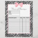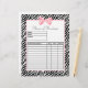 Maak het bestellen van de klant eenvoudig met deze stijlvolle, stijlvolle zebra drukboutique bestelformulieren, voorzien van een korrelig roze lintvormig lintontwerp, gebonden aan een schattige boog. Personaliseer u door de naam van uw winkel of online winkel toe te voegen. Deze trendy bestelformulieren sjablonen hebben een plaats voor een productbeschrijving, hoeveelheid en verkoopprijs. Vlak gedrukt afbeelding, geen echt lint.