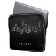 Dit ontwerp bevat een handgetekende schets van de stad Chicago skyline op een donkere achtergrond.