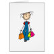 Chiffre de achat fille de bâton sur la carte personnalisable de voyage d'achats.