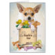 Chihuahua Cookie Jar altijd wenskaarten met een schattige Chihuahua puppy dat over een koekjer zat gevuld met een handige koekje aan de voorkant van de kaart en "Busted" aan de binnenkant van de kaart...schattig, grappig en een soort Friskybizpet Design.