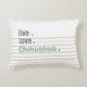 Dit Chihuahua accentkussen toont een levendige, veelkleurige gestreepte achtergrond met de vertederende zin "Live. Liefs. Chihuahua." De achterkant is een zachte gele tint versierd met een kleine poot print, waardoor het een ideaal geschenk voor hondenliefhebbers, in het bijzonder degenen die dol zijn op Chihuahua's. Zowel het ras als de kleur zijn aanpasbaar aan elke voorkeur. Het charmante en eenvoudige ontwerp voegt een vleugje grilligheid en stijl toe aan elke ruimte, waardoor het bewondering zal oogsten als een heerlijk kameraccent.