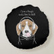 Het ontwerp heeft een illustratie van een ontspannende beagle met een hoofdtelefoon en een blazend roze kauwgom. Met uw gepersonaliseerde favoriete achtergrondkleur maakt het een schattig, grappig en uniek rond kussen.