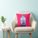Deze kussen bevatten een origineel schilderij van kunstenaar Anne Harwell van een antiek Chinees porseleinen vaas in een delicaat detail met blauw en wit op een dieproze achtergrond.