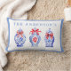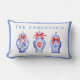 Dit chique lumbale kussen is voorzien van 3 verschillende gemberpotjes met rode strikken. De rand rond de kaart is een blauwe rand. Je kunt personaliseren met jouw naam. Op de achterkant zit een bamboe lattenpatroon.