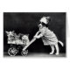 Fabuleux chiot se promenant avec trois chatons en calèche ! Cute chatons en noir et blanc avec chiot tout habillé. Parfait pour les dames et les gents de félins fous de se livrer à leur obsession féline.