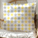 Schattigee Preppy Diamond Pattern Kussens. Pas dit elegante kussen aan voor uw eigen huisdecoratie of voor een heerlijk huisverwarmend cadeau. Prachtig geel en grijs design.
