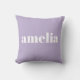 Schattige kussen met uw monogramnaam of initialen in een populair vet wit lettertype en een pastellavendel paarse achtergrond. U kunt de grootte van het lettertype in het ontwerpgereedschap aanpassen voor kortere of langere namen. Perfecte slaapkamer en slaapkamerinrichting.