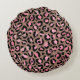 Chique rond kussen met een trendy luipaardprint in roze en zwart op een mocha mousse achtergrond.