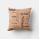 Een zoet ontwerp van de gooikussens voorzien van een tekstblok chocolade, donkere chocolade en amandelen in het Engels, het Frans en het Duits plus andere woorden in een verscheidenheid van letterstijlen, grootte en kleuren over een pastelperzikachtergrond aan beide zijden van de kussen. In de juiste kolom onder Kies uw opties u kunt ook de Lumbar Pillow selecteren.