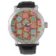 Geniet van een heldere, kleurrijke quiltblokkunst elke keer dat u uw horloge controleert of als cadeau aan een quilter of quiltliefhebber geeft. Quiltkunst op basis van originele kunst beschikt over favoriete patchwork quiltblokken plus unieke blokken gemaakt in levendige en dynamische kleuren van sinaasappel, geel, roze, turquoise en limoengroen op een chocoladebruine achtergrond. Quiltkunst is originele kunst van stof- en quiltontwerper Phyllis Dobbs en zit in een stoffen collectie van Quilting Treasures. Deze kunst is beschikbaar op andere producten en in verschillende kleuren achtergronden. Meer producten zijn verkrijgbaar in Phyllis' Zazzle BusinessWithFlair winkel.