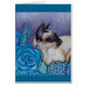 Oorspronkelijk schilderij van Sandra Gale, met een chocoladepunt, een Siamese kat, omringd door blauwe bloemen op een bleke paarse achtergrond. Bloemen zijn blauwe hydrangea, blauwe papaver en een blauw roos. Geweldig ontwerp voor kattenliefhebbers en hen die vooral van het Siamese ras houden. Ideaal voor slaapkamerwandkunst of omlijst met bijpassend afbeelding. Het gelijkaardig schilderen van de waterverf van een blauw punt Siamese ook beschikbaar.