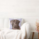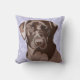 Deze gooiende kussen bevatten mijn portret van een Chocolate Brown Short Hazard Retriever van de Labrador tegen een blauwe florale achtergrond.