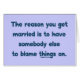 La raison que vous vous mariez est d'avoir quelqu'un d'autre pour blâmer des choses dessus. Mots de la sagesse du vieil homme grincheux. Humour grincheux de vieil homme pour le mari grincheux.