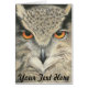 Un crayon de couleur et un dessin au stylo d'une Grande Chouette à la corne avec des yeux orange percés.