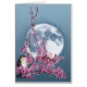 Un tableau d'une Chouette d'Écorce perché sur la branche fleurie d'un arbre fruitier, avec une Pleine lune dans l'arrière - plan. Copyright de l'oeuvre ©2018 Kimberly J Tilley.