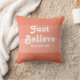 Dit schattige kussen heeft zalm- en oranje strepen en een bijbelvers uit het evangelie van Marcus.
