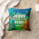 Een stijlvolle inspirerend CHRISTELIJKE PILLOW. Ontwerp shows CYAN, BLUE en GROEN abstract patroon met een inspirerend Christelijk bericht: JESUS GEEFT U REAL PEACE (MAN) - gebaseerd op de Filippijnen 4:6. De verwijzing van de Manuscript is .