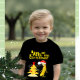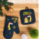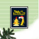 Funny yellow banana with Santa hat and yellow Christmas tree on ark blue background
