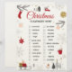 Festive Christmas scavenger hunt checklist artwork with a clean white background and charming holiday illustrations. Designed with elegant red cursive typography, surrounded by cozy winter elements like evergreen branches, snowflakes, houses, trees, a snowman, and warm holiday details. The balanced layout creates a joyful seasonal atmosphere perfect for family-friendly celebrations. All text and images are fully editable, allowing easy changes to match any style or preference.