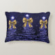 Christmas Sparkling Trees Navy Blue Faux Gold Bow Accent Kussen