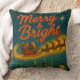 Imagine Santa soaring across the night sky, with a "Merry and Bright" message. Below, a quaint snow-covered village twinkles, radiating warmth and magic. Perfectly captured on your throw pillow, it's a festive scene inviting joy and nostalgia.