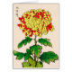 Carte de note dans une illustration japonaise vintage d'un chrysanthème, en jaune moutarde profonde, accentué de mandarine orange, avec feuilles en émeraude et vert citron, sur un arrière - plan blanc cassé / crème, numériquement amélioré